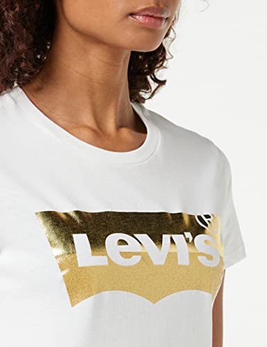 Levi's The Perfect Tee Hsmk Powder Print (Gold, Maglietta Donna, Hsmk Powder Print (Gold) White, M