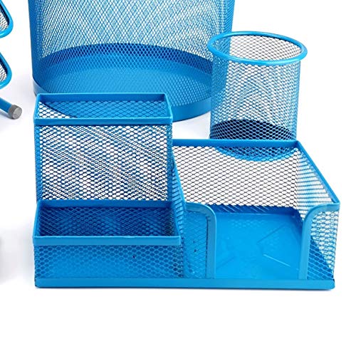 Leviatan Organizzatore da Scrivania | Organizzatore da Scrivania in Metallo | Portapenne da Ufficio | Organizer da Scrivania con Supporto per Appunti in Rete | 205 x 103 x 98 mm | Blu