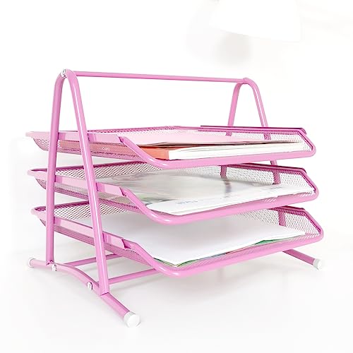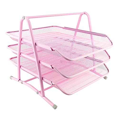 LEVIATAN Vano Portaoggetti in Metallo | Organizer da Scrivania | Cassetti per Documenti | 3 Cassetti Portacorrispondenza | Portadocumenti A4 Mesh | Cassetti per Ufficio | Rosa Cipria
