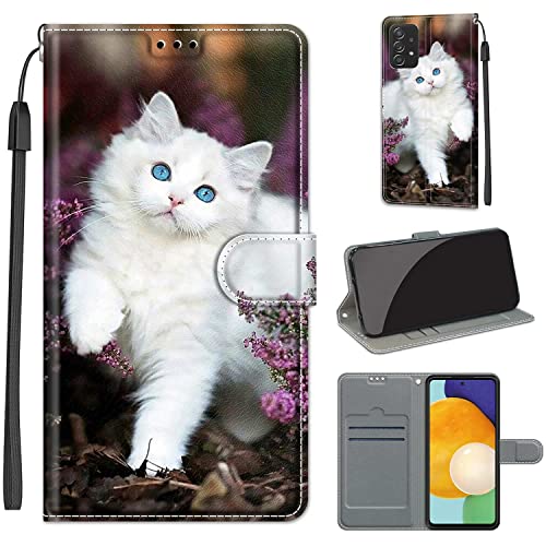 LeviDo Cover Compatibile per Samsung Galaxy A53 5G Silicone Libro Motivo PU Pelle Magnetica Flip Portafoglio con Corda Disegni Antiurto Bumper Custodia Resistente Protettiva Case, Gatto Bianco