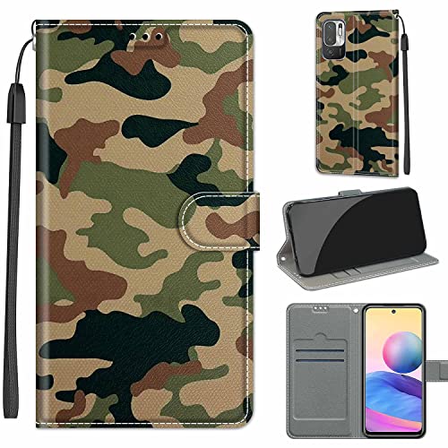 LeviDo Cover Compatibile per Xiaomi Redmi Note 10 5G Silicone Libro Motivo PU Pelle Magnetica Flip Portafoglio con Corda Disegni Antiurto Bumper Custodia Resistente Protettiva Case, Camuffare