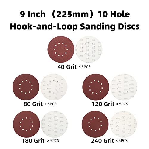 Dischi abrasivi in velcro (9 pollici) 225 mm dischi abrasivi pretagliati con 10 fori per un'efficiente aspirazione della polvere