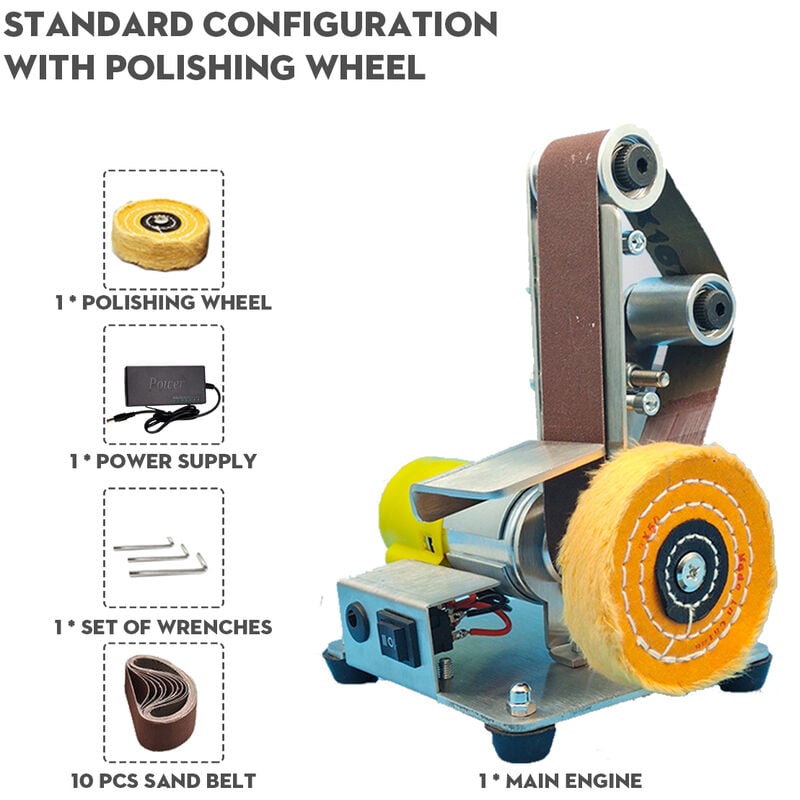 Caratteristiche: - Corpo in acciaio inossidabile 304, che non è mai arrugginito e più resistente. - Multifunzionale: lucidatura, levigatura e foratura, che è più conveniente. > - Grande potenza: motore in rame puro, corpo in metallo, robusto e resistente. - Cintura di sabbia 33x3 cm: compatta e portatile, facile da usare. - Supporto interruttore anteriore e posteriore, portatile e facile da usare. Specifiche: Nome del prodotto: levigatrice elettrica a nastro Materiale del corpo: acciaio inossidabile 304 Materiale del motore: rame puro Colore: argento + arancione Tensione di ingresso: 110-240 V Tensione di uscita: 12 -24 V Modalità di commutazione: interruttore a 3 velocità per avanti e indietro Dimensioni: 4 x 11 x 17,5 cm / 1,6 x 4,3 x 6,9 pollici < p>Contenuto della confezione: Tipo A con mola lucidante 1 x levigatrice elettrica a nastro (senza mola lucidante) 1 x mola lucidante 1 x adattatore di alimentazione< br /> 10 cinture di sabbia 3 chiavi