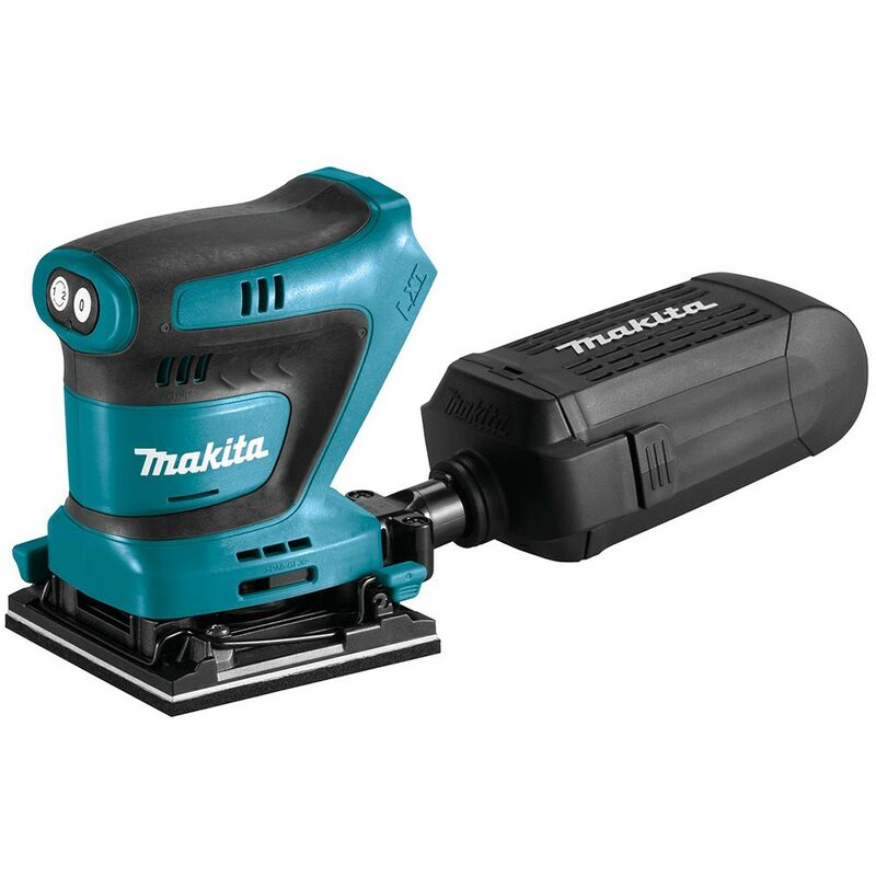 Levigatrice Orbitale MAKITA DBO481 - Levigatrice Orbitale 18V con motore brushless BL, offre un'elevata efficienza di lavoro - Il motore e la batteria si trovano nella parte superiore dell'utensile per evitare lo sfarfallio della base - Controllo velocità tramite pulsante - 2 velocità: + 14000 giri/min per levigare grandi superfici o superfici in legno ruvide + 11000 giri/min per piccole applicazioni di levigatura di superfici come levigatura di bordi in legno, sbavatura di metalli e altro ancora - Grandi leve di bloccaggio in gomma per un'installazione rapida e semplice della carta - Sacchetto per la polvere ad alta capacità con adattatore di aspirazione integrato per una migliore raccolta della polvere - Impugnatura e impugnatura ergonomiche in gomma progettate per una migliore vestibilità e comfort - La tecnologia XPT dello strumento offre una maggiore resistenza a polvere e acqua