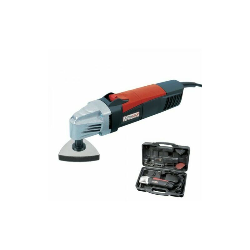 LEVIGATRICE CON ACCESSORI E ACCESSORI Per tutti i lavori di precisione o finitura su numerosi supporti: legno, materie plastiche, metallo, ecc. La sua progettazione ne fa un utensile molto utile in caso di lavorazioni in luoghi di difficile accesso. Le sue lame possono posizionarsi in vari modi rispetto all'asse della macchina (-90° / +90°).• Motore 230 V-50 Hz - 260W - Protezione classe II.• Oscillazioni: 22000 giri/minuto - Angolo d'oscillazione: 3,2°.• 1 chiave esagonale - 1 testa di smerigliatura triangolare in inox + 2 piastre abrasive.• 1 lama raschiante flessibile in inox - 1 lama di sega in inox per legno e materie plastiche.