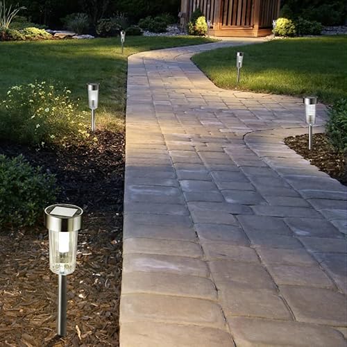 Palo LED a energia solare. Paletto in acciaio inox ideale per l'illuminazione all'aperto. Faretto solare da giardino.