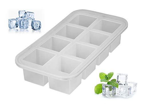 Levivo Stampo per Cubetti di Ghiaccio, in Silicone, per 8 Cubetti, Classica, Vaschetta Antiaderente, Stampo Cubetti, Trasparente, 27 x 14 x 5.5 cm