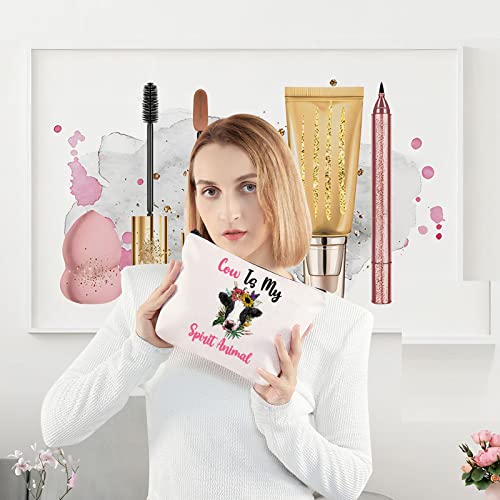 LEVLO Divertente borsa per cosmetici a forma di mucca, regalo ispirato agli amanti della mucca, con cerniera, per donne e ragazze, Animale Spirito Mucca, Large