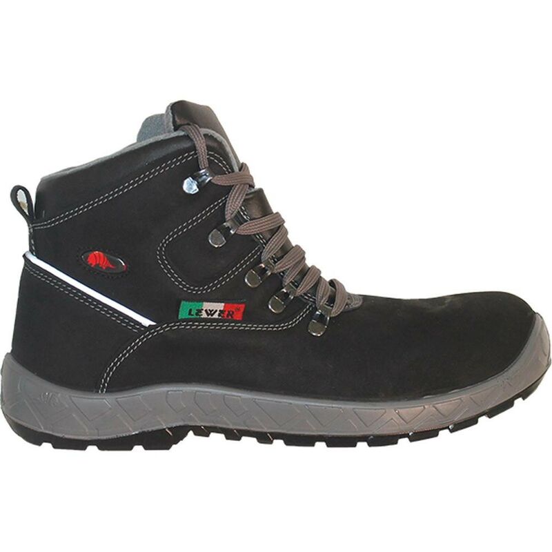 Scarpa antinfortunistica alta Paestum 1704 S3 CI della linea Evolution 2.0 di Lewer. Evolution 2.0 Suola Track Tyres. Morbidezza e Grip sono i punti di forza della suola evolution, il fondo è realizzato in materiale compatto resistente all'usura e all'abrasione, il disegno è tale da permettere un'ottima resistenza allo scivolamento (Grip). La mescola del poliuretano bidensità studiato per assorbire gli urti e l'assorbimento di energia nella zona del tallone offrono un totale benessere al piede. Caratteristiche: Classe di protezione: S3 CI. Tomaia: pelle fiore ingrassata idrorepellente. Fodera: TH INSULATE - Protezione dal freddo. Soletta: estraibile e termoformata ad alto potere di assorbimento del sudore. Puntale: Composito 200J. Antiperforazione: HTC insole perforazione zero. Misure: da 35 a 48.