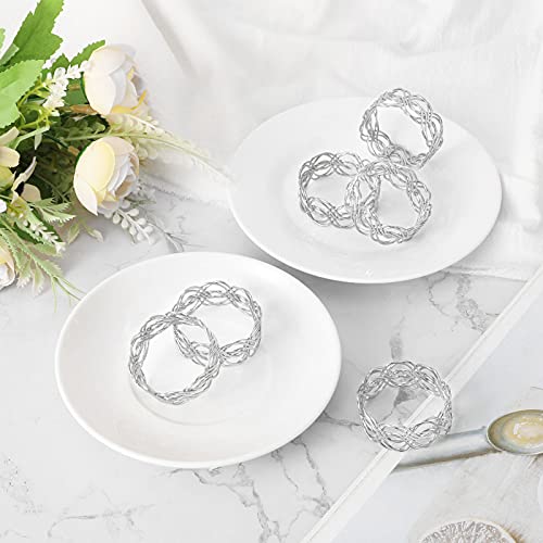 Lewondr Set di 6 Anelli Portatovagliolo in Metallo, Porta Tovaglioli da Tavola Anelli Portasciugamani Ideali Come Decorazione della Tavola per Feste Matrimonio Anniversari Compleanni, Argento