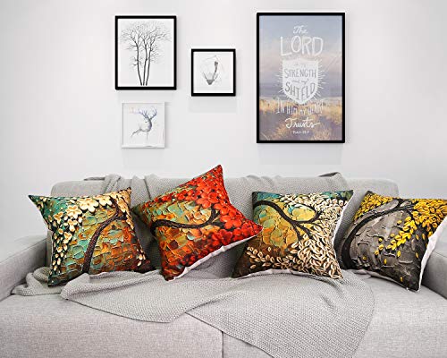 Lewondr Fodere Cuscini 4 Pezzi Copri Cuscini in Lino con Immagini Animali, Chiusure a Cerniera, Forma Rettangolare 45 x 45cm, Federe per Cuscini Divano, Foresta, Alberi Infioriti - Wonder Forest