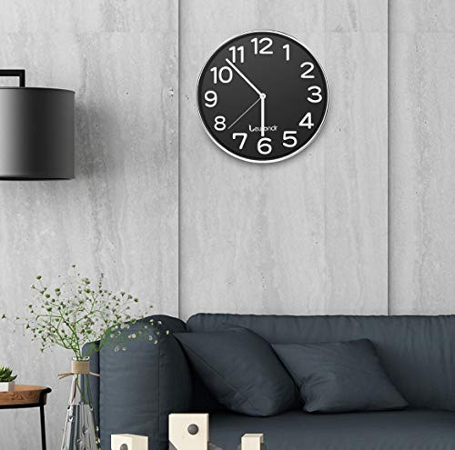 Lewondr Orologio Muro Orologio da Parete, Orologio Grande 30cm Moderno con Numeri Grandi, Lancette, Meccanismo Silenzioso Impostazione Facile, 1 Batterie AA, Orologio per Camera, Cucina, Ufficio, Nero
