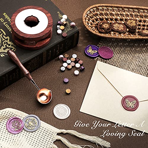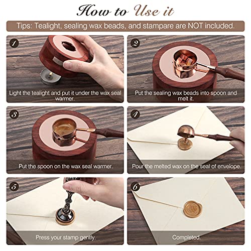Lewondr Kit Strumenti di Fusione della Cera, Timbro Cera per Sigillo Cucchiaio Strumento Forno per Cera con Manico, per Ceralacca Sciogliere Ceralacca, Rosewood