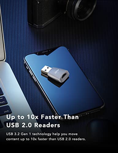 Supporto per schede di memoria Micro SD/Micro SDHC/Micro SDXC, lettura/scrittura rapida e semplice per trasferire file di foto, video e giochi dal tuo cellulare, tablet, fotocamera digitale, drone o console di gioco.