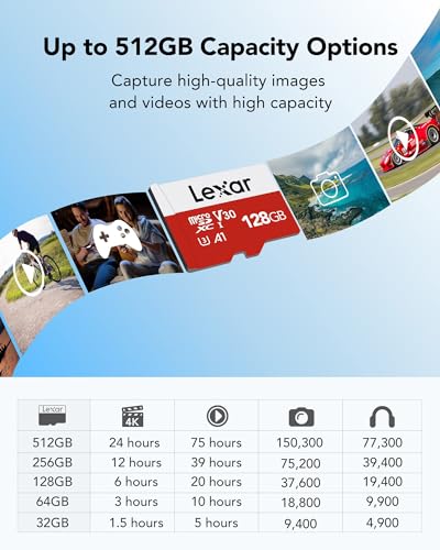Alta Velocità di Trasporto: Con velocità di lettura fino a 100MB/s, e di scrittura fina a 30MB/s, Queste Lexar schede micro sd hanno valutazione di classe U3, V30 e per le prestazioni ad alta velocità, consente di trasferire senza problemi foto di alta qualità e video 4K UHD. Formato exFAT.