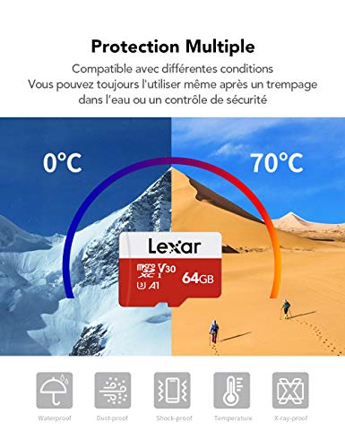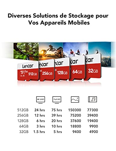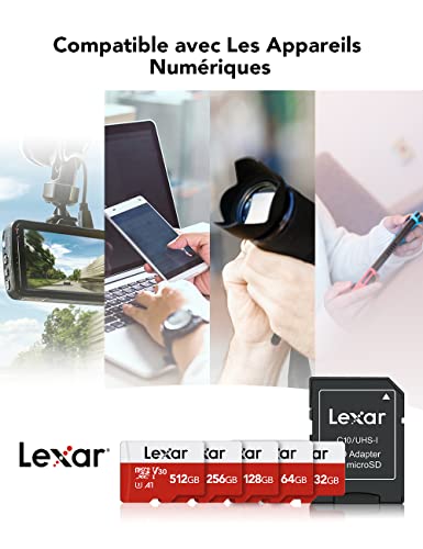 Largement Application: Lexar carte microSDXC est compatible avec smartphones, drones, tablettes Android, tablettes PC, dash cam, caméras d'action, DSLR et caméscope 4K UHD ou Full HD;
