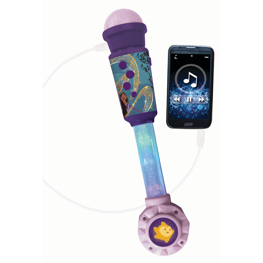 Dettagli del prodotto: Età: da 3 anni in su Un microfono lampeggiante Disney Wish per piccoli cantanti in erba Canta a tempo di musica con le luci colorate della testina del microfono Sono incorporati effetti artificiali di applausi e incitamenti per il cantante Connessione per dispositivo audio esterno inclusa Le melodie iconiche dei vostri eroi preferiti sono incluse insieme ad altri brani per ore di canti e balli Altoparlante incorporato. Alimentato da 2x batterie AA/LR6 da 1,5 V (non incluse) Dimensioni e peso: Dimensioni una volta assemblato (lunghezza x larghezza x altezza): 6,6 x 5,6 x 31,8 cm Peso: circa 0,25 kg