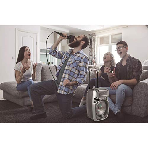 Lexibook IParty Karaoke Bluetooth, su Ruote con Effetti di Luce e Microfono Inclusi, Batteria Ricaricabile, Nero/Argento, K8250, Colore