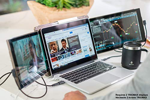 Design compatto e leggero: 3,.8 x 24,1 x 1,27 cm - 898 g. Include 1 schermo TRIOMAX + 1 cavo USB-C+A + 12 piastre metalliche adesive per 3 laptop + 1 TRIO clip.