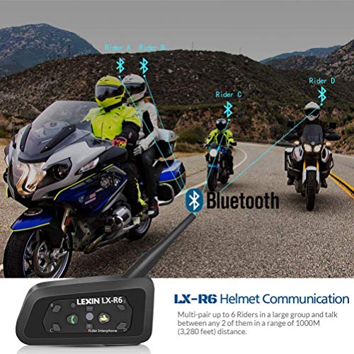 LEXIN LX-R6 - Interfono per moto Bluetooth, auricolare ricetrasmittente, raggio d'azione 1000 m, fino a 6 moto, manuale di istruzioni in spagnolo (lingua italiana non garantita)