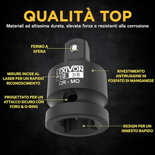 LEXIVON Adattatori per bussola ad impatto, Kit riduttori per bussola 1/4" - 3/8" - 1/2", per avvitatore Makita, Milwaukee, Bosch, per chiave dinamometrica e a cricchetto, 4 pezzi, (LX-112)