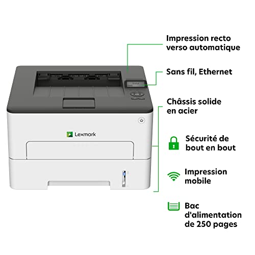 La stampante Lexmark B2236dw compatta, collegabile alla rete e conveniente offre una velocità di stampa fino a 34 pagine al minuto* in bianco e nero, nonché WLAN standard e stampa fronte/retro.