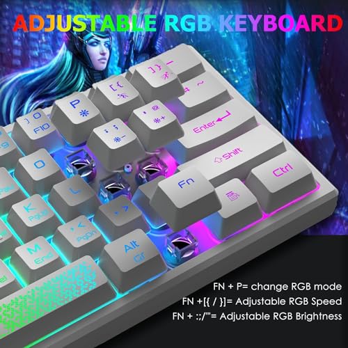 Lexonelec K61-60% Bianco Tastiera E Mouse Da Gaming Con Retroilluminazione RGB, Mini Compatta 62 Tasti Meccanica Tatto QWERTY - 6400 Dpi Led Topo Ultraleggera Cavo Flexible Per Win Mac PC Tablet
