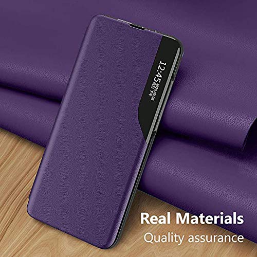 LEYAN Cover per Huawei P Smart 2021, Smart Specchio View Flip PU Leather Case, Premio Custodia Cellulare con Una Schermo Finestra, Folio Case con Supporto Pieghevole, Viola