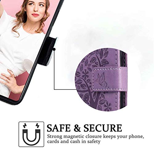 LEYAN Cover per Samsung Galaxy S21 Plus 5G (S21+), Custodia Flip TPU/PU Portafoglio Pelle con Stand/Carte Slot, Chiusura Magnetica Goffrata con Motivo Telefono Case Custodie, Lavanda