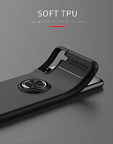 LEYAN Cover per Samsung Galaxy S21 Plus 5G (6.7")/(S21+), TPU Silicone Custodia con 360° Girevole Anello, Soft Rubber Protettiva Case, Antiurto Antiscivolo Protezione Shell, Nero+Nero