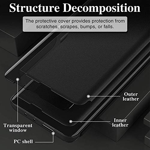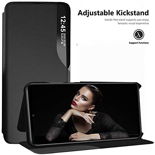 LEYAN Cover per Samsung Galaxy A72 | A72 5G, Smart Specchio View Flip PU Leather Case, Premio Custodia Cellulare con Una Schermo Finestra, Folio Case con Supporto Pieghevole, Nero