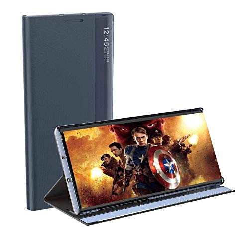 LEYAN Cover per Samsung Galaxy A12, Smart Specchio View Flip PU Leather Case, Premio Custodia Cellulare con Una Schermo Finestra, Folio Case con Supporto Pieghevole, Blu Reale