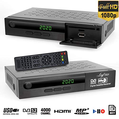 Leyf-0301 - Ricevitore satellitare PVR con funzione di registrazione digitale (HDTV, DVB-S/DVB-S2, HDMI, SCAR, 2 USB, Full HD 1080p) [preprogrammato per Astra, Hotbird e Türksat] + cavo HDMI