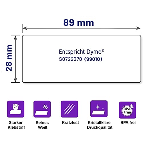 Leyf Etichette per Dymo 99010 - S0722370-89 X 28 mm - 100 rotoli di etichette pacco x 130 pezzi per rotolo = 13000 etichette, autoadesiva, etichette per indirizzi, Compatibile con Dymo e Seiko