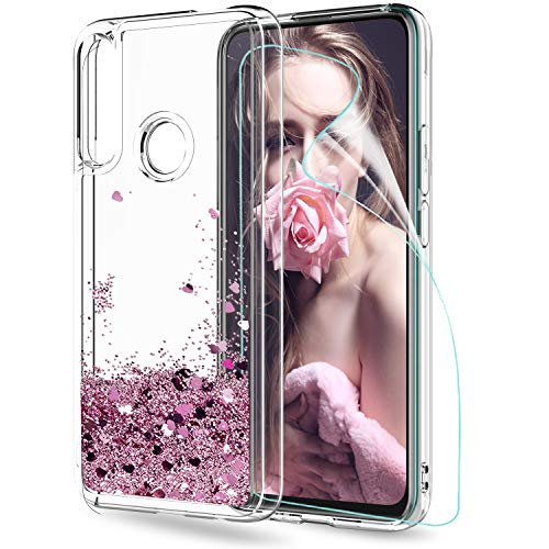 LeYi Cover Huawei P Smart Z Glitter Custodia con HD Pellicola,Brillantini Silicone Mobili Bumper TPU Case per Custodie Huawei P Smart Z Donna ZX Rose Gold