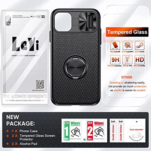 LeYi Cover per iPhone 11 Antiurto, Custodia con Scorrevole Fotocamera Proteggi, Supporto di Anello, [2 Pezzi] Vetro Temperato Pellicola, TPU Militare Resistente Robusta Custodie per iPhone 11 Nero