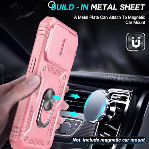 LeYi Cover per iPhone 15 Pro Max Custodia con Protezione Fotocamera [Slidable] Antiurto Grado Militare 360° Anello Supporto TPU Bumper Silicone Case iPhone 15 Pro Max 6.7'', Rosa