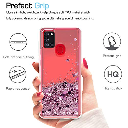 LeYi per Cover Samsung Galaxy A21S Custodia Glitter con HD Pellicola Protettiva, Brillantini Silicone Sabbie Mobili Antiurto Bumper TPU Case Donna Ragazza per Samsung Galaxy A21S Rosa