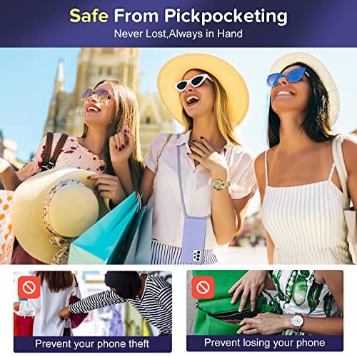 LeYi per Cover Samsung Galaxy A52/A52S 5G con Vetro Temperato [2 Pack]+Pellicola Fotocamera[2 Pack],Custodia con Cordino,Silicone TPU Antiurto Protezione Morbido Cellulare Collana Custodie,Viola