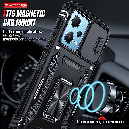 LeYi Cover per Cover Xiaomi Poco X5 5G/Redmi Note 12 5G con 2 x Pellicola Vetro Temperato, Custodia con Protezione Fotocamera [Slidable] Antiurto Grado Militare Anello TPU Bumper Custodie Case Nero