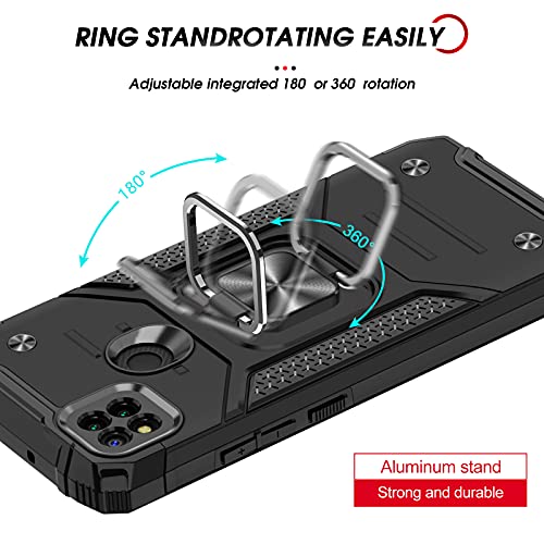 LeYi Cover per Xiaomi Redmi 9C/9C NFC con [2 Pack] Vetro Temperato,Custodia Armour Metallo Magnetica Supporto Silicone TPU Hard PC Morbida Slim Bumper Full Body Antiurto Case per Redmi 9C Nero