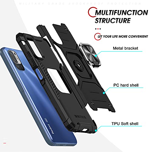 LeYi per Cover Xiaomi Redmi Note 10 5G/Poco M3 Pro 5G con Vetro Temperato [2 Pack],Custodia Armour Metallo Supporto Silicone TPU Bumper Full Body Antiurto Case per Telefono Redmi Note 10 5G Nero