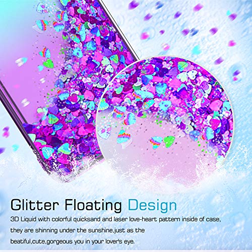 LeYi per Cover Xiaomi Redmi Note 8 con Vetro Temperato[2Pack],Brillantini Glitter Sabbie Mobili Custodia 3D Rigida Silicone Bumper per Custodie Redmi Note 8 Turquoise Violet Gradient