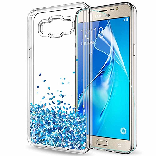 LeYi Custodia Galaxy J7 2016 Glitter Cover con HD Pellicola,Brillantini Trasparente Silicone Gel Liquido Sabbie Mobili Bumper TPU Case per Custodie Samsung Galaxy J3 2016 Telefonino Donna ZX Rose Gold