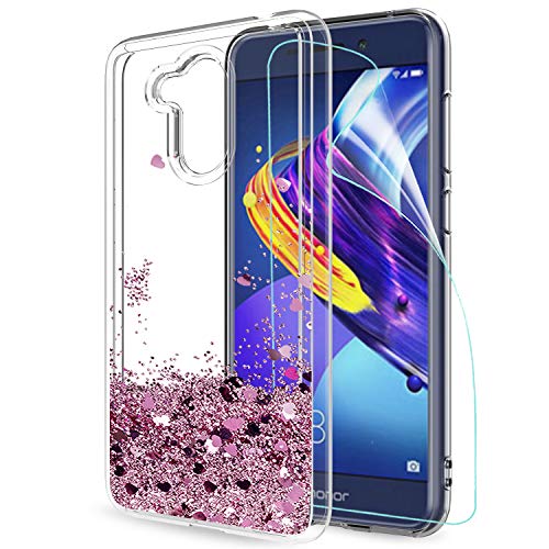 LeYi Custodia Huawei Honor 6C PRO/Honor V9 Play Glitter Cover con HD Pellicola,Brillantini Silicone Gel Liquido Sabbie Mobili Bumper TPU Case per Custodie Huawei Honor 6C PRO Donna ZX Rosa Rose Gold