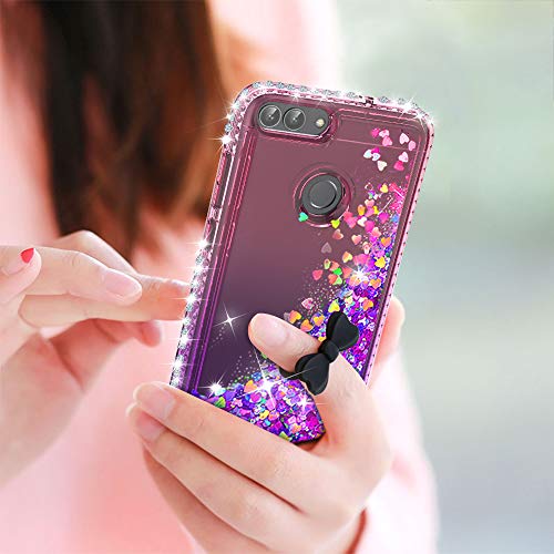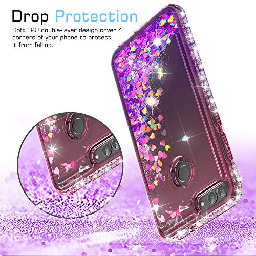 LeYi Custodia Huawei P Smart/Enjoy 7S Glitter Cover con Vetro Temperato [2 Pack],Brillantini Diamond Silicone Sabbie Mobili Bumper Case per Custodie Huawei P Smart Donna ZX Pink Purple Gradient