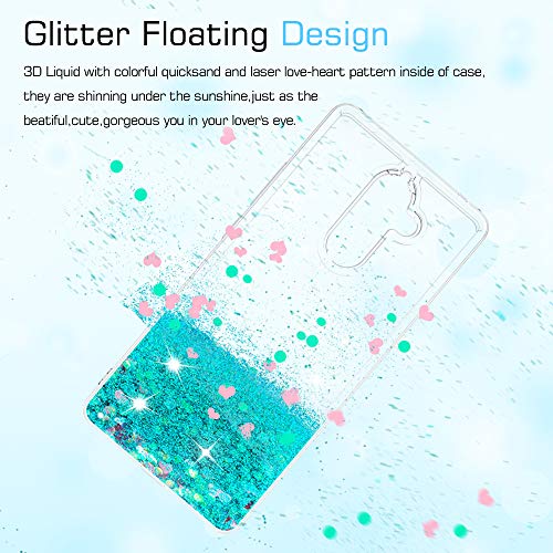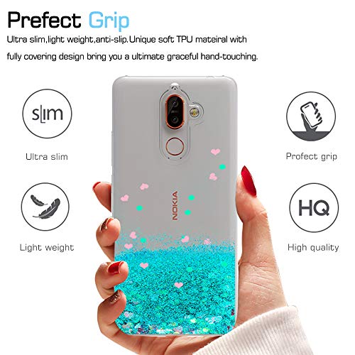 LeYi Custodia Nokia 7 Plus Glitter Cover con HD Pellicola,Brillantini Trasparente Silicone Gel Liquido Sabbie Mobili Bumper TPU Case per Custodie Nokia 7 Plus Donna ZX Turquoise