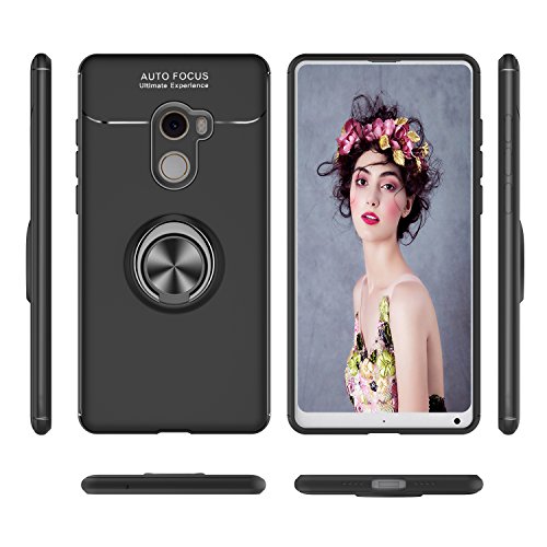 LeYi Custodia Xiaomi Mi Mix 2 Cover con HD Pellicola,Bumper TPU Case con Girevole Regolabile 360 Magnetica con Supporto Smartphone Silicone Custodie per Xiaomi Mi Mix 2 Case JSZH Nero