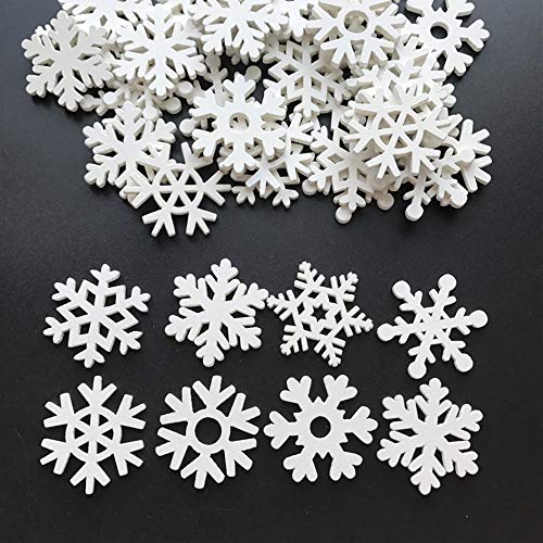 LEZED Fiocchi di Neve di Natale in Legno Bianco Pendente Fiocco di Neve in Legno Ciondoli da Appendere Artigianato Decorativi per Cucito e Lavorazione Fai da Te 100 Pezzi 35mm