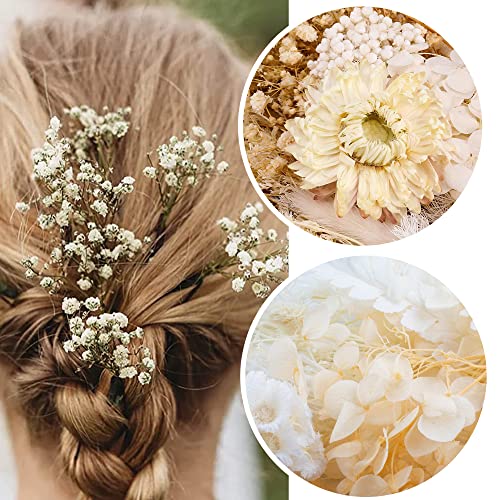 Vari tipi: ogni confezione di set di fiori secchi contiene foglie di felce, anice stellato, margherite, pini, ortensie, gipsofila, fiori immortali e altri fiori secchi naturali.Ci sono vari tipi di fiori per soddisfare le tue esigenze.